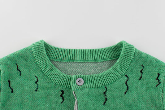 Boys Dinosaur Pattern Round Collar Long-Sleeved Sweater Cardigan