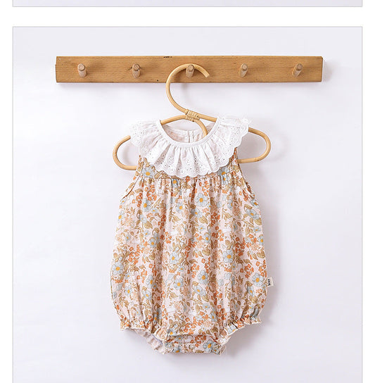 Summer Hot Selling Baby Unisex Various Print Sleeveless Hollow Out Collar Onesies