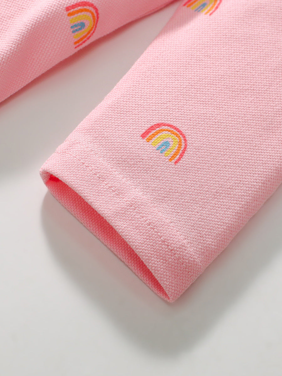 Best Selling Autumn Girls Rainbow Pattern Turn-down Collar Long Sleeves Polo Dress